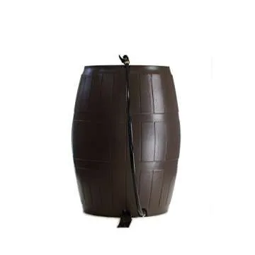 FCMP Outdoor Raincatcher, Flat-Back Rain Barrel with Spigots, 50-Gallon, Brown