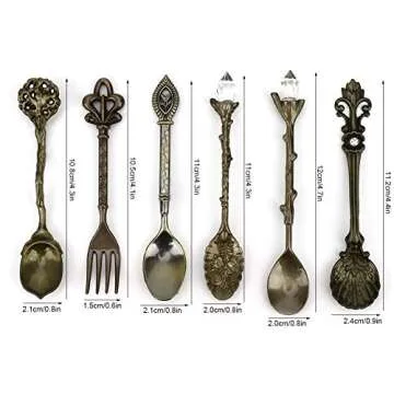 Fdit 6Pcs/Set Vintage Carved Coffee Spoon Teaspoon Retro Zinc Alloy Dessert Coffee Tableware Spoons Cutlery Kitchen(Green Bronze)