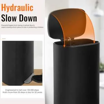 FDW Kitchen Trash Can with Lid for Office Bedroom Bathroom Step Trash Bin Fingerprint-Proof Garbage Bin Brushed Stainless Steel 13 Gallon (Black)