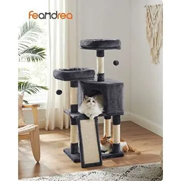 Show moreTransform your home into a feline paradise with the Feandrea Cat Tower, an expertly designed sanctuary for all your indoor cats. Standing at a generous height of 45.3 inches, this cat tree is more than just a piece of furniture; it’s a safe haven for your cats to scratch, explore, and nap peacefully. With plush top perches encircled by raised edges, this tower caters to your pets’ comfort, offering them a cozy spot to watch the world from above.