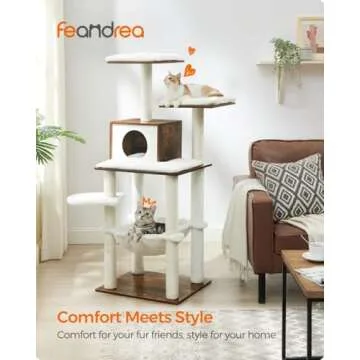 Feandrea Cat Tree, 54.3-Inch Modern Cat Tower for Indoor Cats, Multi-Level Cat Condo, Ultra-Soft Plush, Scratching Posts, Hammock, Removable, Washable Cushions, Rustic Brown UPCT164X01