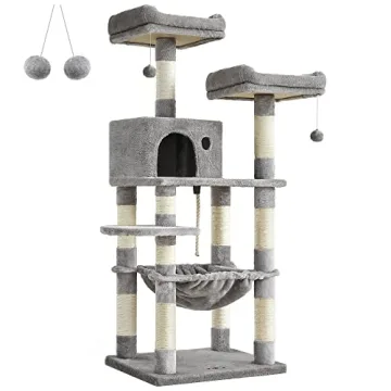 Show moreDiscover the ultimate sanctuary for your beloved feline friends with the FEANDREA Cat Tree! Designed with a keen understanding of what cats love, this cat tree features two plush top perches that envelop your cat in soft comfort, ensuring they can relax in blissful serenity. The padded edges create a safe and cozy environment, perfect for afternoon naps while keeping your fur babies snug and secure. This stunning cat tree not only provides a luxurious escape for your pets but also blends beautifully into your living space with its elegant light gray finish.