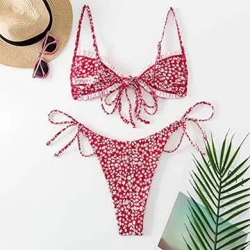 Get ready to turn heads this summer with the stunning bikini set from our exclusive swimwear collection. This lightweight and invigorating string bikini features a unique ditsy-floral print that adds a vibrant pop to your beach wardrobe. Made from a combination of polyester and spandex, this bikini ensures a comfortable fit while boasting quick-drying and breathable properties, making it ideal for both sunny beach outings...