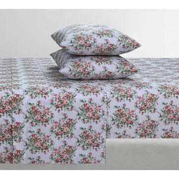 Feather & Stitch Softest 100% Cotton Sheets, 300 Thread Count Percale Weave Bedding, 16" Deep Pocket, Cooling Sheets, Breathable Bed Set, Hotel Premium Quality (Queen, Floral)