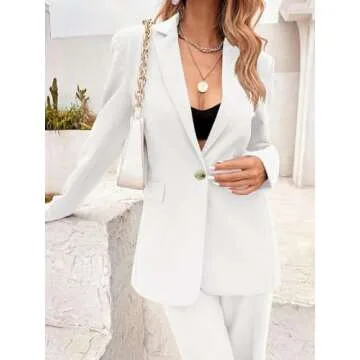 Febriajuce Women's Casual Long Sleeve Lapel Oversized Button Work Office Blazer Suit Jacket