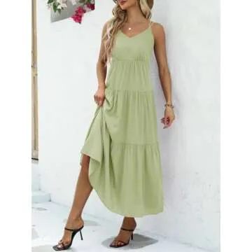 Febriajuce Women’s Summer Maxi Dress Casaul Spaghetti Straps Solid V-Neck Backless Cami Dresses with Two Pockets Light Green