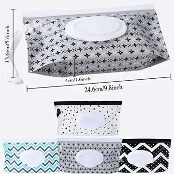 Measuring at an ideal size of 9.8x5.4x1.12 inches, these dispensers easily fit into diaper bags, backpacks, or even purses, making them the perfect companion for parents on the go. The included nylon loop conveniently allows you to attach them to various items, ensuring you always have wipes within arm's reach. Designed with four unique patterns, you can effortlessly coordinate them with your style while adding a touch of charm to your parenting gear.
