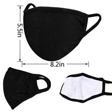 FECEDY 6pcs/Pack Black Face Mask Windproof Dustproof Face Masks Breathable Reusable Washed for Outdoor Sport Half Face Earloop Cotton Face Masks(Black)