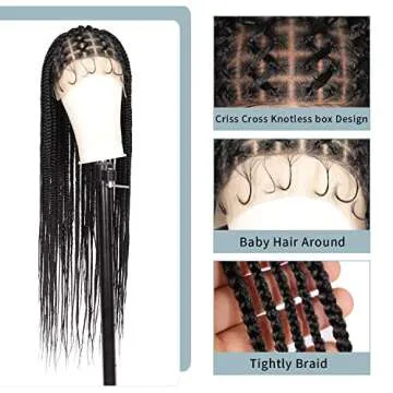 Fecihor Criss Cross Knotless Braided Wigs with Baby Hair 36" Cornrow Lace Front Braids Wigs for Women Full Double Lace Black Braid Wig