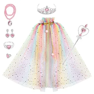 Fedio Princess Cape Set - 7 Piece Rainbow Dress Up Set for Girls