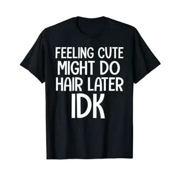 Show moreShow off your love for hairstyling and embrace your playful side with the "Feeling Cute Might Do Hair Later IDK Funny Hairstylist" shirt! Tailored specifically for hairdressers and beauty enthusiasts, this hilarious t-shirt redefines how you can express yourself in a lighthearted way while showcasing your profession. Made from a lightweight, breathable fabric, this classic fit shirt is not just about humor; it’s a comfortable companion that lets you move freely through your daily tasks. The double-needle sleeve and bottom hem ensure durability, so you can wear it countless times without worry!