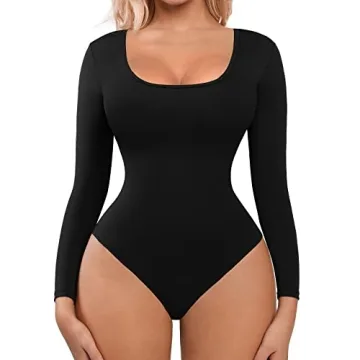 FeelinGirl Shapewear Bodysuit for Women Tummy Control Long Sleeve Women Body Shaper Compression Bodysuit Black L