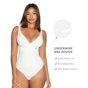 FeelinGirl White Body Suits Women Tummy Control Thong Shapeweawr Bodysuit