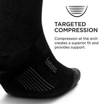 Feetures Merino 10 Ultra Light Quarter- Wool Hiking & Running Socks for Men & Women, Targeted Compression (1 Pair) X-Large, Charcoal