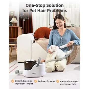 Show moreIntroducing the Feiduck Dog Grooming Kit with Vacuum Suction – the all-in-one solution designed to make pet grooming an effortless and enjoyable experience for both you and your furry friend. This innovative grooming kit comes equipped with 12 essential grooming tools, all neatly organized to help you tackle every grooming task—from brushing and trimming to nail clipping. With its powerful 2.5L vacuum capacity, this kit efficiently collects pet hair as you groom, ensuring a cleaner home and a stress-free experience for your pet. The low noise design adds an extra layer of comfort by minimizing noise, reducing anxiety for sensitive pets. Your dog deserves the best, and this kit delivers just that, combining functionality and comfort in one sleek, grey design.