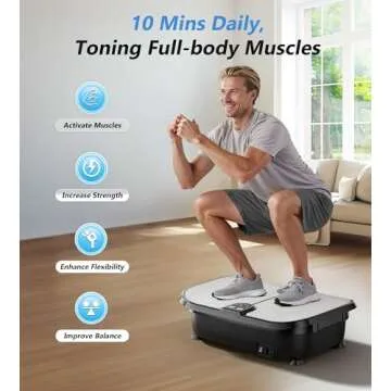Show moreTransform your fitness routine with the FEIERDUN Vibration Plate Exercise Machine. This innovative vibration platform is designed to tone and enhance your entire body with just 10 minutes of use per day. Perfectly crafted for muscle contraction activation, it provides an efficient and effective alternative to traditional workouts, offering enhanced strength, flexibility, and balance. The power plate not only helps you achieve your fitness goals but is also an excellent tool for relaxation and pain relief after those long days at the office.
