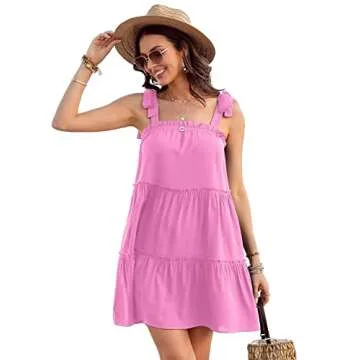 Feiersi Womens Boho Beach Dress Sleeveless A line Swing Loose Casual Sundress Beachwear(Pink,Small)