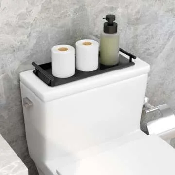 FEILERN Toilet Paper Basket, Stainless Steel Toilet Tank Tray with Handle for Organizing - Toilet Paper Basket Storage for Toilet Tank, Bathroom, Kitchen Counter (Black)