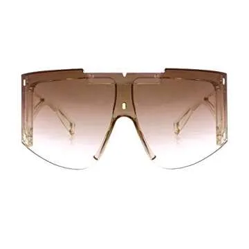 FEISEDY Sunglasses for Women, One Piece Oversized Sunglasses for Men and Women, Wrap Shield Sunglasses for Cycling, Driving, Vacation (B4027, Champagne Frame & Gradual Tea Lens)