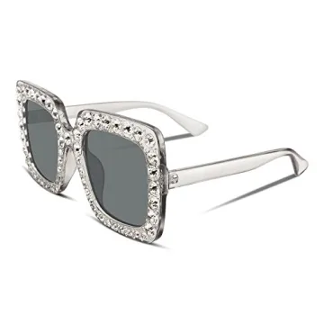 FEISEDY Women's Sparkling Crystal Sunglasses - Oversized Square Frame