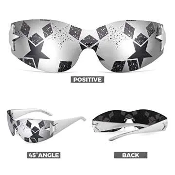 FEISEDY Y2K Sunglasses for Women Men 2000s Fashion Rimless Wrap Around Frameless Star Sun Glasses B9090