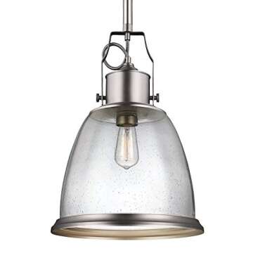 Show moreIntroducing the Feiss P1356SN Hobson Glass Pendant Lighting, a stunning blend of modern elegance and functional design. With a height of 20.5 inches and a width of 14 inches, this pendant quickly becomes a statement piece in any space it graces. The satin nickel finish offers a sleek, contemporary look, while the clear seeded glass shade provides a warm, inviting glow. Weighing in at just 11.3 pounds, it’s easy to install, yet sturdy enough to add a touch of sophistication to your home decor.
