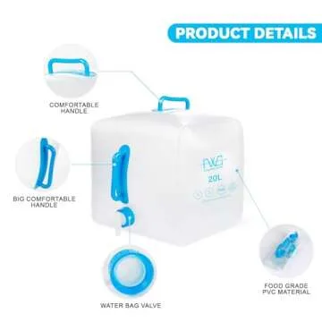 Show more Introducing the FEIWOOD GEAR BPA Free Collapsible Water Container – your ultimate companion for outdoor adventures and emergency preparedness! Designed with a perfect blend of functionality and durability, this innovative 20L (5.3-gallon) water jug is not only lightweight and collapsible but also made from food-grade PVC material, ensuring your water stays fresh and uncontaminated. It's a must-have for camping, hiking, travel, or any outdoor activity where access to clean water is critical.