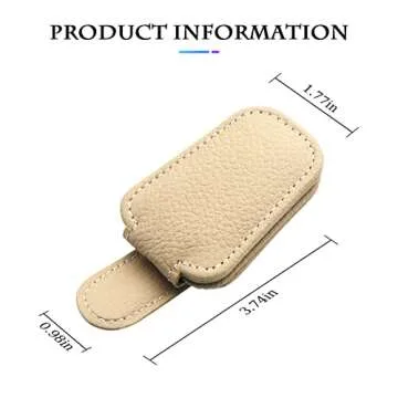 Show moreIntroducing the Fekey&JF Magnetic Leather Sunglasses Holder for Car Sun Visor, the perfect blend of style and functionality designed to keep your sunglasses and eyeglasses organized and accessible while you drive. Crafted from the first layer of leather, this holder is not only soft to the touch but also remarkably durable, ensuring that your glasses remain scratch-free and in pristine condition. The sleek beige color effortlessly complements any car interior, making this accessory as stylish as it is practical. Enjoy 100% risk-free shopping with our return policy if it doesn't perfectly fit your sunglasses legs, bringing you peace of mind with your purchase.