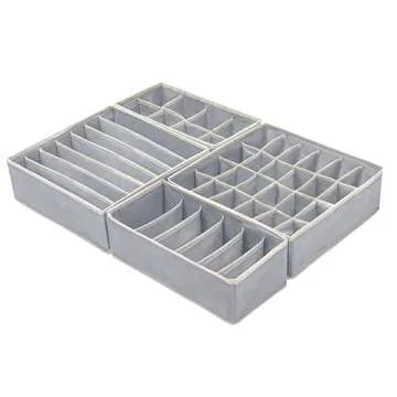 Felibeaco 4 Pack Foldable Underwear and Bras Drawer Organizers, Fabric Closet Dresser Drawers Organizers Dividers, Clothing Storage Organizers Box for Lingerie, Panties, Socks, Briefs,Ties, Gray