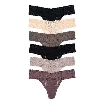 Felina Stretchy Lace Low Rise Thong - Sexy Underwear for Women, Thongs for Women, Seamless Panties for Women (6-Pack) (Black Mink Neutrals, S/M)
