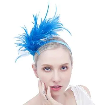 FELIZHOUSE 1920s Fascinator with Feathers Headband for Women Kentucky Derby Wedding Tea Party Headwear (Peacock Blue)