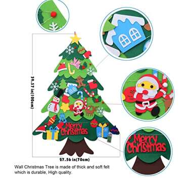 Felt Christmas Tree 3.3 Ft DIY 33 Pcs Detachable Ornaments Decoration for Kids Wall Hanging with Lights Xmas Gifts for Boys Girls Nativity Sets Indoor Decor