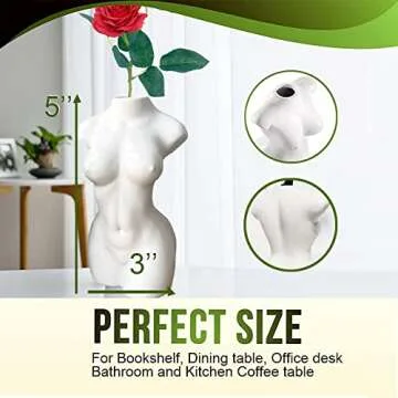 Show more This stunning Female Body Vase is not just a home accessory but a statement piece inspired by the beauty of ancient Greek artistry. Each vase is handcrafted with care, capturing the essence of femininity and elegance. Measuring at 13.5 cm (5.1 inches), it is perfectly sized for a small flower or even a single pencil, making it a space-saving addition to any room.