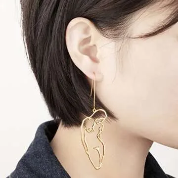 Female Face Body Dangle Earring Gold Aesthetic Statement Earring Abstract Fun Jewelry for Women