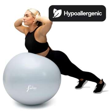 Femeo® Exercise Ball for Yoga, Stability, Pregnancy Pilates & Birthing | 100 Page Book | Over 50 Workout Exercises | Anti Burst Ice Blue 65cm