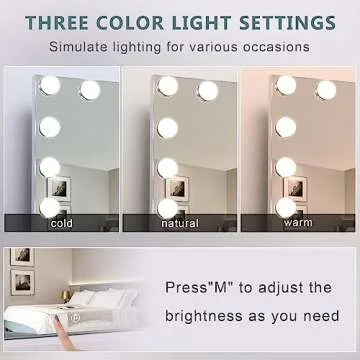 Illumination is key to achieving the perfect look, and the Fenair mirror doesn’t disappoint with its 18 dimmable LED bulbs. You can choose from warm, cool, or natural light options, which simulate various lighting environments typical in social settings, ensuring you find the right hue to complement your makeup style. Experience a mirror that matches your aesthetic needs perfectly.