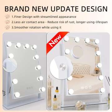 FENCHILIN Hollywood Vanity Mirror with Lights, Lighted Makeup Mirror with 3 Color Light Modes, Smart Touch Control, 360 Degree Rotation(White)