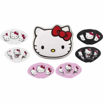 The tin contains 18 medium gauge picks featuring custom Hello Kitty designs.