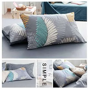 FenDie Blue Pillow Cases Queen Pillowcases Set of 2 100% Cotton Pillow Covers Standard Size Leaves Pattern Decorative Pillow Covers 20 x 26 Envelope Pillowcases