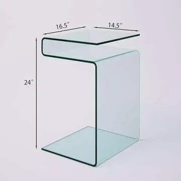 FENGHUA GLASS HOME S-Shaped Night Stands for Bedrooms Glass Bedside Table with Storage Shelves,End Table Small Coffee Table for Living Room