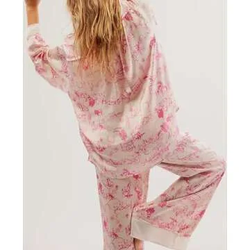 Show more Indulge in the luxurious comfort of our stunning satin pajama set, designed specifically for women who value both style and relaxation. This two-piece silk pajama ensemble is crafted from a premium polyester satin blend that feels irresistibly soft against the skin, allowing you to enjoy unparalleled comfort and breathability. The top features a crafted long sleeve design with a button-down front, V-neck, and chic lapel collar, all adorned with an exquisite floral print that embodies elegance and charm.