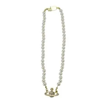 FENLDY Rhinestone Faux Planet Saturn Pearl Necklace for Women Jewelry, Fake Pearl Collar Pendant a Necklace Men with Charm for Girls Y2k Jewelry Ladies' Wedding Pearl Bead Chain Crystal Choker (Gold)