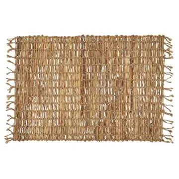 Show more Elevate your dining experience with the exquisite Fennco Styles Hand Woven Water Hyacinth Fringe Placemats. These stunning, natural placemats are a perfect blend of beauty and functionality. Measuring 14 x 20 inches, each placemat features a unique handwoven design made from 100% water hyacinth, bringing a touch of eco-chic elegance to your home. The oblong shape with fringes offers a stylish, rustic charm that complements your wood furniture beautifully, making them an ideal addition to both indoor and outdoor dining settings. Whether you're hosting a casual dinner or a chic garden brunch, these placemats provide not just protection for your table but also a delightful backdrop for your tableware and centerpieces, enhancing the overall ambiance.