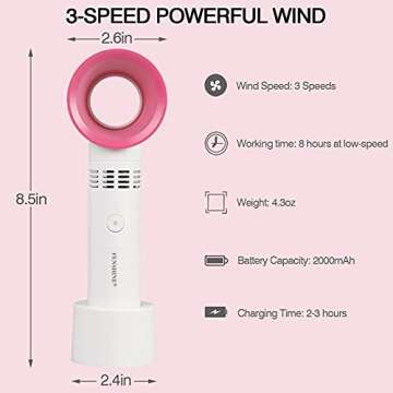 The fan's bladeless design ensures that you don't have to worry about spinning blades, making it a safe option for homes with children or pets. Clean-up is a breeze, as you can simply wipe it down. Moreover, the detachable base adds versatility, allowing you to secure the fan whenever you need it, so you never miss a beat in your beauty routine.