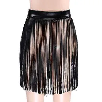 Fenyong Leather Fringe Skirt – Unique Tassel Hip Scarf for Women Black with Stunning Design