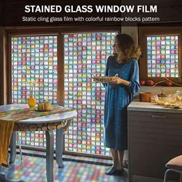 FEOMOS Stained Glass Window Film, Rainbow Window Tint, Window Privacy Films, Decorative Window Stickers for Home Anti UV 17.3 x 118 inches