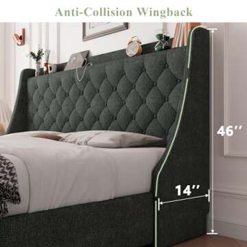 Feonase Upholstered King Size Bed Frame with 4 Storage Drawers, Charging Station and Tufted Wingback Storage Headboard, No Box Spring Needed, Easy Assembly, Dark Grey