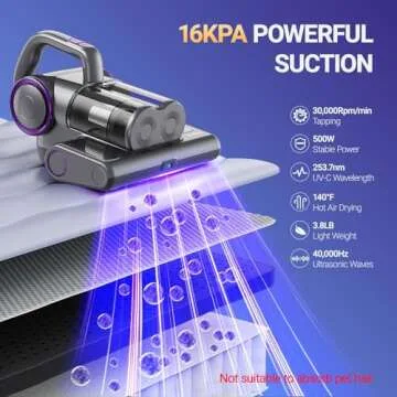 Show more If you're in search of the ultimate solution to maintain a clean and healthy sleeping environment, look no further than our cutting-edge UV Mattress Vacuum Cleaner. Featuring a powerful 500W motor that delivers a remarkable 16kPa of suction and operates at 30,000 RPM, this innovative cleaner penetrates deeply into your mattress and upholstered furniture, effectively lifting away fine dust, skin flakes, and other harmful particles.