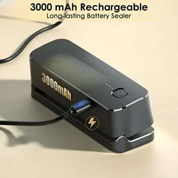 FEPPO Mini Bag Sealer, Bag Sealer Heat Seal Rechargeable Quick Seal Bags Machine, 3 Adjustable Gears Chip Bag Sealer with 3000mAh Battery 3.9" Heating Strip For Snack Bags Mylar Bags Food Storage