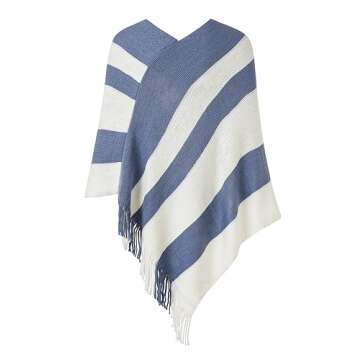 Ferand Women's Striped Poncho Sweater Cozy Knit Fringe Shawl Wraps for Fall Winter